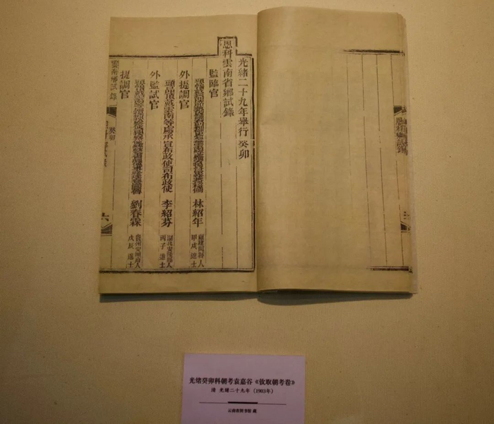第一展厅讲述了云南贡院的成就,为明代十五所贡院之一,历史上最后一次乡试在此院举行。五百年间,云南贡院开文运,抡英才,促进了本省学校教育的发展,并为云南近代留学生教育的发展储备了人才。