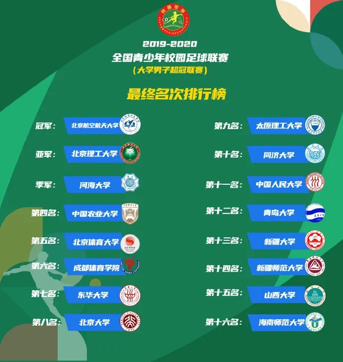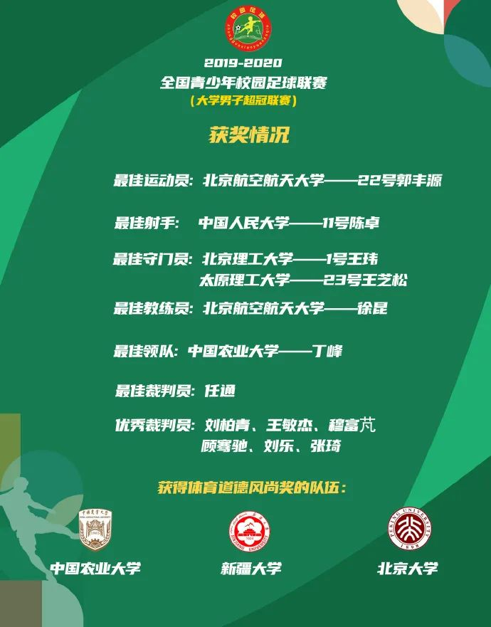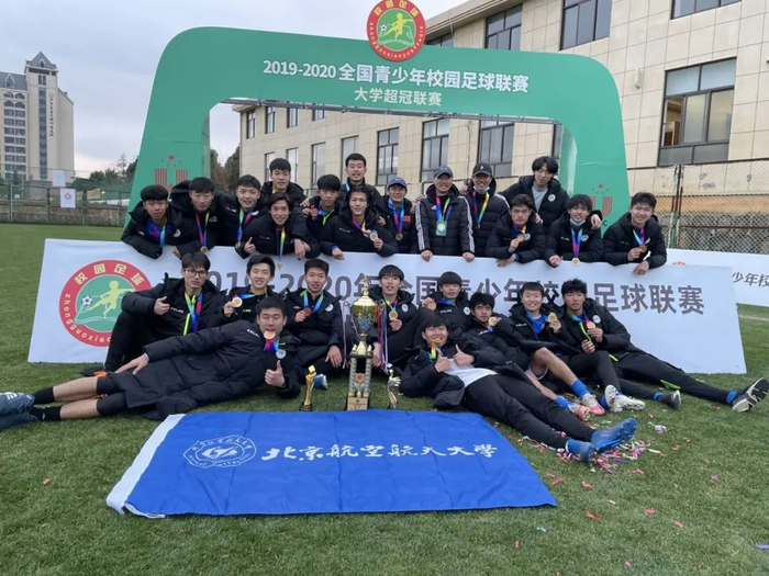 北航队经过90多分钟的鏖战和伤停补时,最终以1:0的比分战胜实力强大的北京理工大学,继2018年夺冠后,再次获得2019-2020年全国青少年校园足球联赛(大学男子超冠联赛)冠军!