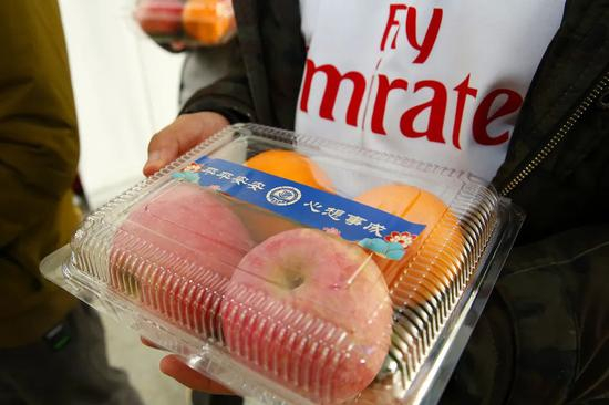 一套果盒由2个苹果和2个橙子组成,苹果甘甜可口,寓意平平安安;橙子美味多汁,寓意心想事成。