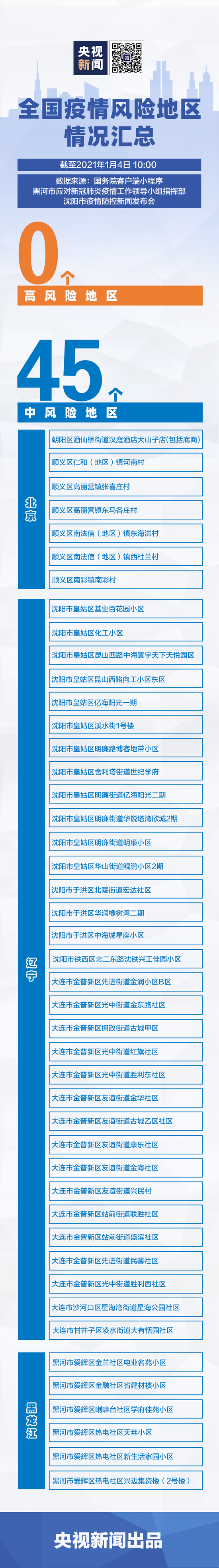 4日上午,辽宁省沈阳市新增3个中风险地区:沈阳市皇姑区明廉街道华锐塔湾欣城2期、皇姑区明廉街道明廉小区、皇姑区华山街道鲲鹏小区2期。