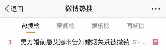 #男方婚前患艾滋未告知婚姻关系被撤销#冲上热搜第一