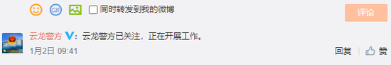 1月2日早上9点多,云龙警方在该网友的微博下回复:已关注,正在开展工作。