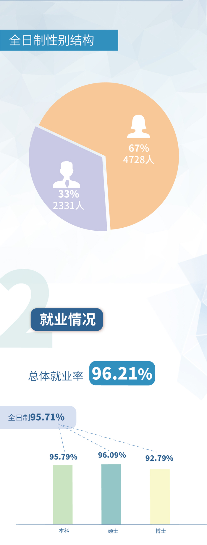 学校高度重视毕业生就业工作,按照学校第十三次党代会精神和《“十三五”发展规划纲要》、《世界一流大学建设方案》确定的目标任务,努力践行“育人”、“文明”、“发展”三大核心使命,聚焦“教育+”“生态+”“健康+”“智能+”“国际+”五大行动计划,大力推进卓越人才培养,有效促进毕业生高质量就业。