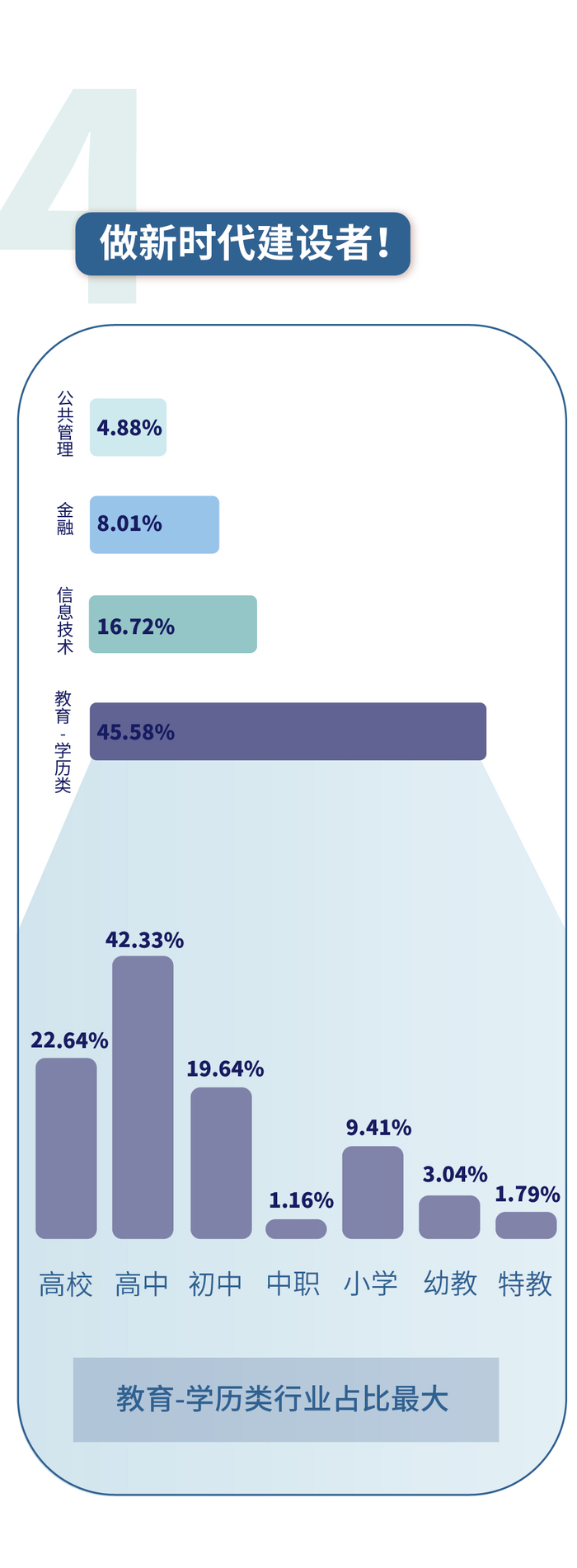 服务国家战略!做新时代建设者!到祖国最需要的地方去!教育-学历类行业占比最大。