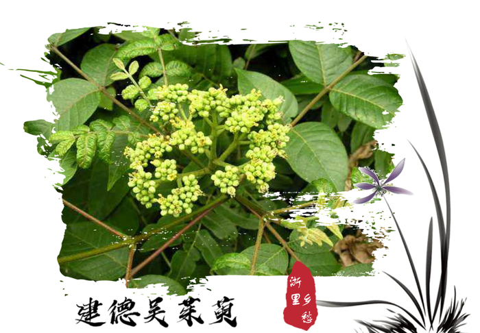 建德吴茱萸主产地为建德市域全境,主要分布在新安江、寿昌江及兰江两岸的河谷平原及低山丘陵。建德吴茱萸干品呈扁球形,直径2~3.6毫米,裂瓣不明显,多闭口,饱满;表面暗绿色至褐色;气芳香浓郁、味辛辣而苦。