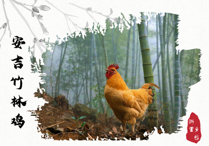安吉竹林鸡主产地为安吉县域全境。安吉竹林鸡生产历史悠久,背平直,双翅紧贴,尾羽高翘,具有体形紧凑、体态匀称、羽毛光亮、毛孔细腻等特征。