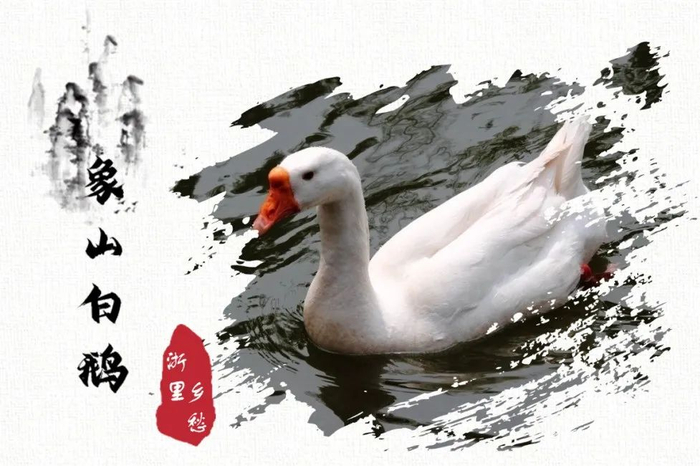 象山白鹅饲养地域为宁波市象山县的15个乡镇。象山白鹅体型中等,体态匀称,全身羽毛白色,头部肉瘤高突,呈橘黄色,颈细长,虹彩呈灰蓝色,胫、蹼呈橘黄色,爪呈玉白色。