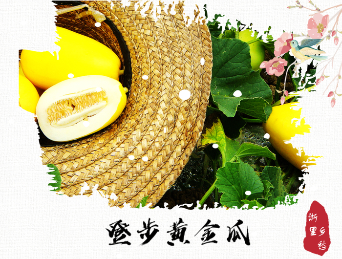 登步黄金瓜主产地为舟山市普陀区所辖登步乡、桃花镇两个岛屿。登步黄金瓜果实卵型、果形较小,单果重150g-250g;皮薄光滑,色泽鲜黄、果肉白皙、瓜瓤黄色,肉瓤同食;香气浓郁、质地脆爽、鲜甜可口。