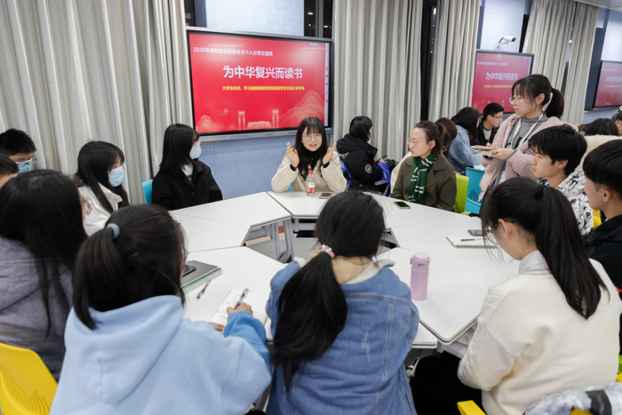 ▲姚昱浓和同学分享个人成长(张小雨摄)
