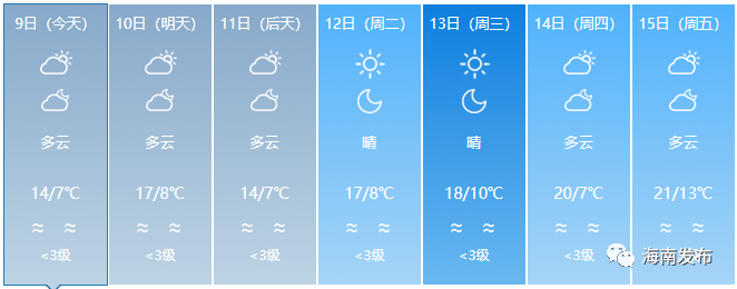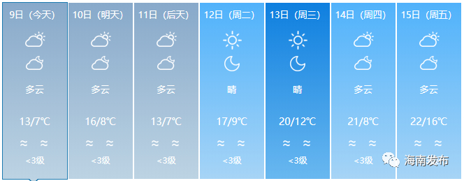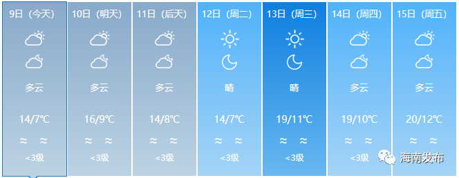 针对这一轮降温,海南省气象部门预测:1月14日,冷空气将减弱,我省各地气温将明显回升。