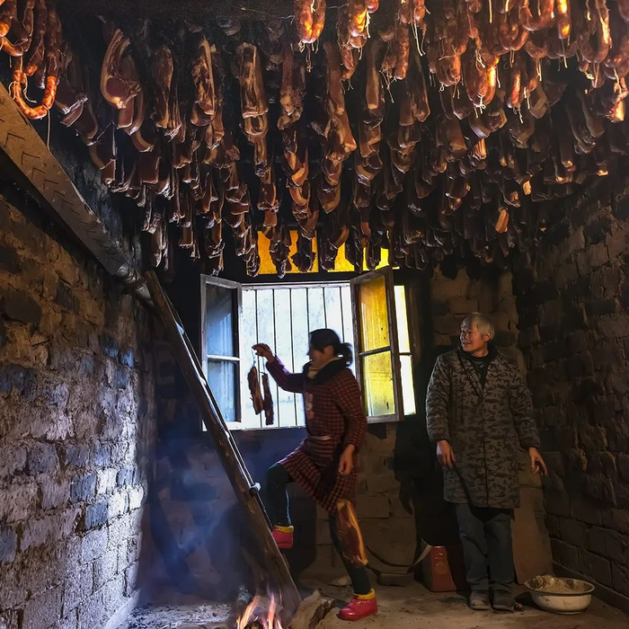 年夜饭上的老腊肉,一片片金黄剔透,给人以齿颊流芳、回味悠长之感,令食客们趋之若鹜。