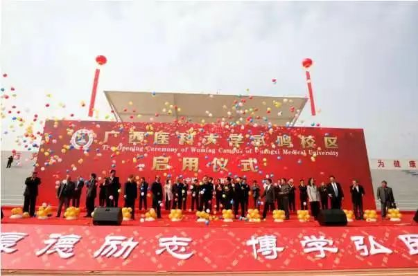 在新年钟声即将敲响之际,师生们企盼已久的以基础医学教育为主、兼顾非医学教育、突出全科医学教育特色的武鸣校区正式启用!我校第一个隶属延伸管理的新校区在全校师生见证下诞生,领导及嘉宾共同放飞彩球,全场响起经久不息的热烈掌声。