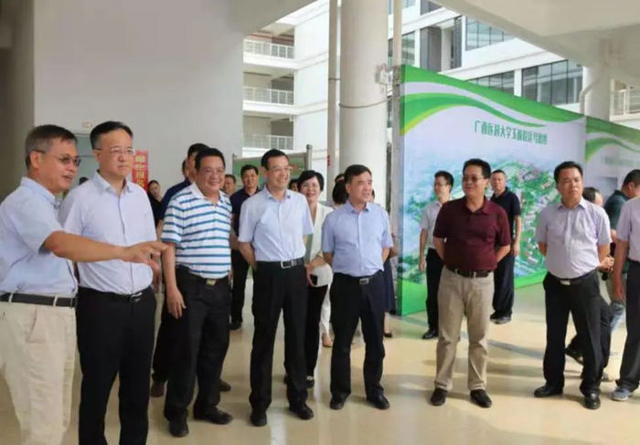 2019年4月24日,自治区副主席黄俊华、自治区教育厅厅长唐咸仅等领导莅临玉林校区调研指导
