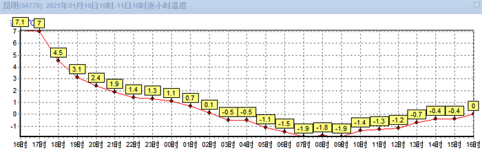 云南省气象台今天8时45分将寒潮蓝色预警升级为寒潮黄色预警:预计未来24小时,昭通、曲靖、文山、红河、玉溪、昆明、楚雄东部日平均气温将下降到4℃以下,且最低气温小于1℃。昭通、曲靖、文山北部、昆明中东部、红河东北部还将出现雨夹雪或小雪,请注意防范。