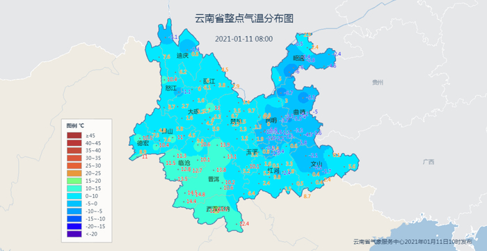 11日20时-12日20时:昭通南部、曲靖、昆明、玉溪北部、文山北部、红河北部、楚雄东部、丽江东部雨夹雪(小雪)转阴,迪庆多云有阵雪,其它地区阴冷局部有小雨。