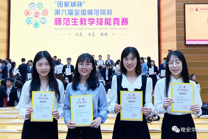 前段时间,在“田家炳杯”第六届全国师范院校师范生教学技能竞赛中,华师师范生又取得了好成绩。大赛分设语文、数学、英语、物理、化学、生物等6个学科组,每个学校每个科目可选派一名选手参赛,华师派出的选手全部获奖。其中,外国语言文化学院尹思婷获得英语组一等奖,化学学院谭宇凌获得化学组一等奖,文学院麦秋琪获得语文组二等奖,物理与电信工程学院吕辰祎获得物理组二等奖,数学科学学院湛晓露获得数学组三等奖,生命科学学院巫卓庆获得生物组优胜奖。