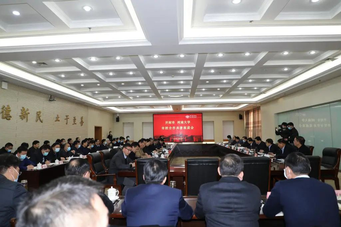 宋纯鹏表示,河南大学扎根开封,千年古城和百年名校共同经历了历史的磨难与洗礼,早已成为了风雨同舟、休戚相关、荣辱与共的命运共同体。尤其是建设“双一流”以来,市校双方在思想体系、领导体系、工作体系等方面实现了融通融合。开封市领导及市直部门的同志多次莅临河大召开现场办公会、项目对接会以及专题会议,帮助解决了一系列学校自身无法解决的问题和困难;河南大学也始终将开封作为发展的根脉,将服务开封经济社会发展作为立身之本和使命担当,主动融入开封城市建设和经济发展。站在新的历史起点上,希望市校双方在原有良好合作的基础上,坚持优势互补、互惠互利、合作共赢、共谋发展的原则,持续完善市校协商机制,拓展合作领域,共同谋划合作项目,推动项目落实落地,为开封各项事业发展增光增彩,为河南大学“双一流”建设添翼助力。