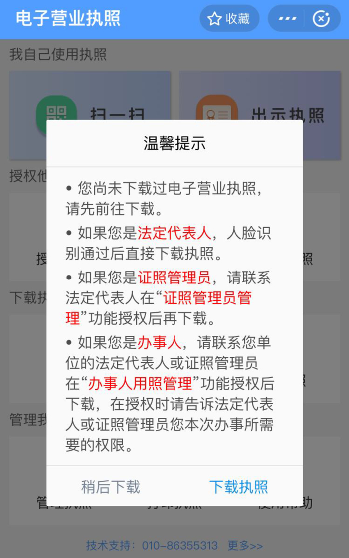 1、企业法定代表人首次操作,可先通过重庆市政府“渝快办”APP或微信、支付宝小程序搜索并下载电子营业执照。