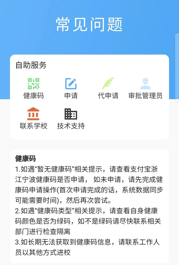 3、身份信息更新(卡或人脸)、电子通行证及健康码状态每日凌晨更新,当日办理需次日才可通行,同理当日通行证过期或健康码非绿码次日将限制入校。