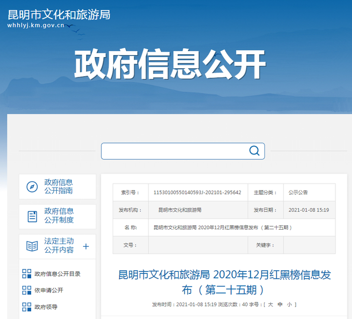 【关注】最高处罚30万元!昆明发布2020年12月旅游红黑榜