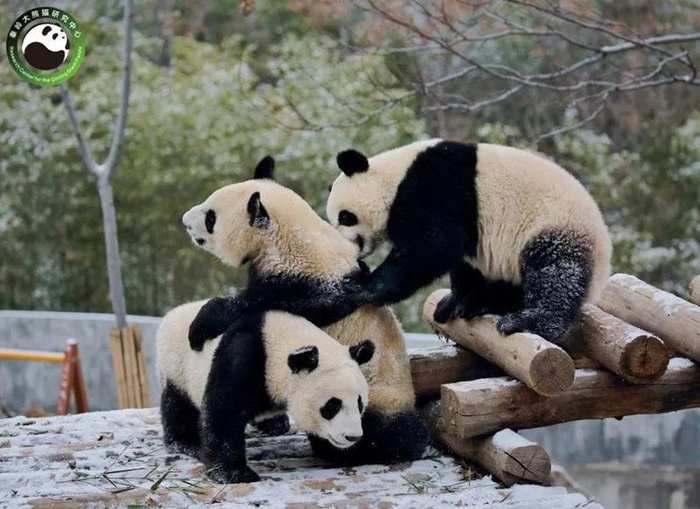 1月12日,秦岭大熊猫研究中心饲养人员展示可爱的3只雌性、1只雄性大熊猫宝宝。 本文图片 微信公众号“陕西发布”