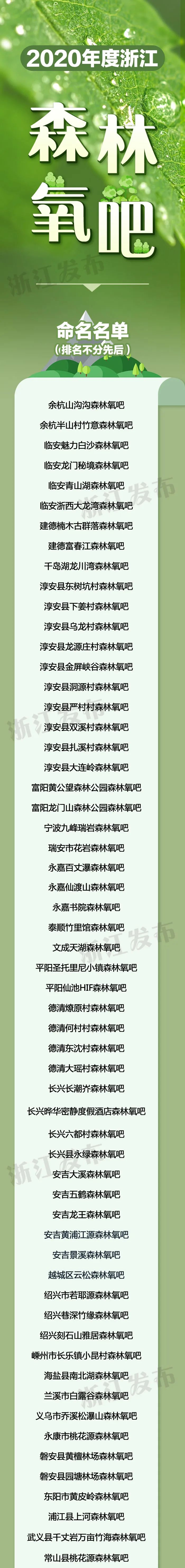 原标题:2020年度浙江森林氧吧名单出炉!这101个地方,你去过几处?