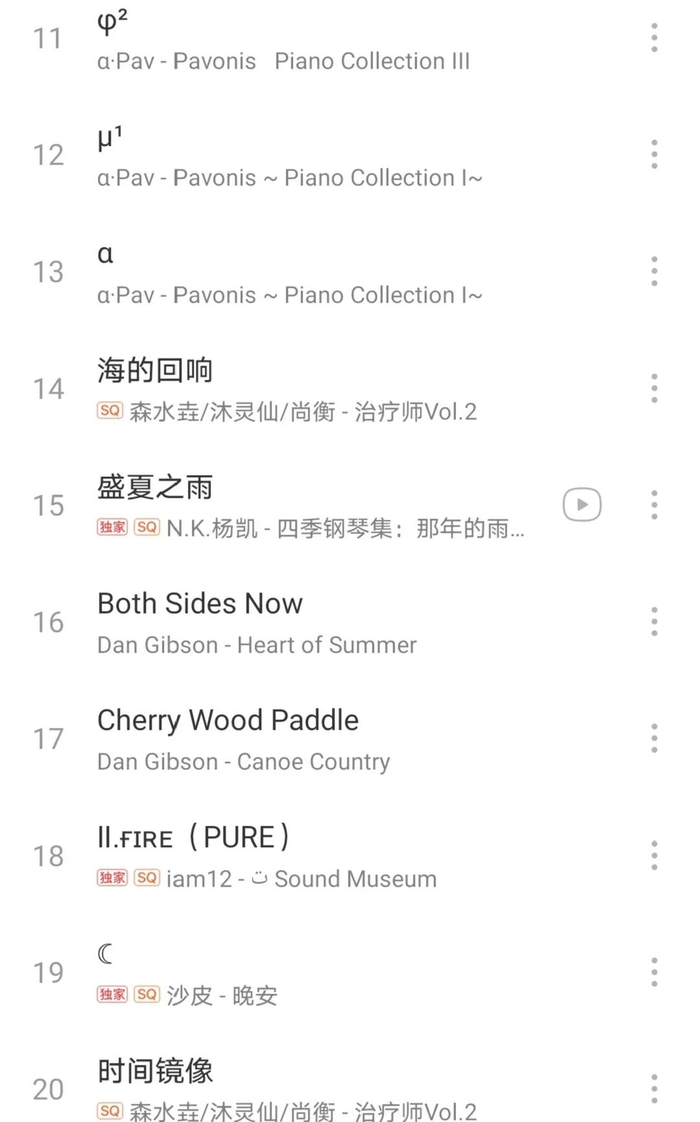 歌单list5减压纯音