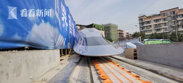 首次亮相的成都高温超导高速磁浮交通样车验证段,位于西南交通大学九里校区。验证段全长165米,占地面积约1250平米。验证项目,将涵盖高温超导磁浮原理工程化样车、悬浮系统、牵引制动系统、运控系统、线下土建及附属工程建设,以及整个系统工程的联调联试和综合性能检测系统。据西南交通大学研发团队介绍,工程样车采用全碳纤维轻量化车体、低阻力头型、大载重高温超导磁浮技术等新技术和新工艺,设计时速620公里。该验证段也是世界首条工程化1:1的高温超导高速磁浮试验线路。