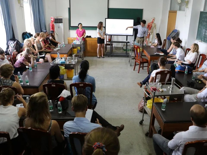 1999年起,中医药学院接受了吉尔吉斯斯坦、匈牙利、泰国、缅甸、韩国、德国等三十多个国家的留学生。并先后派遣多名专家赴古巴、瑞典、科威特、叙利亚、英国等讲学援助,2018年还出色完成卫生部的援非医疗任务。与美国、新加坡、新西兰、澳大利亚等多国大学或科研机构构建良好的学术交流与联系。