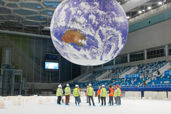 2020年12月1日,北京奥林匹克公园内,世界首个“水冰双向转换”的奥运场馆——国家游泳中心完成第二次水冰结构转换,“水立方”又将巧变为“冰立方”。国家游泳中心成为世界首个泳池上架设冰壶赛道的奥运场馆,将举行2022年北京冬奥会的冰壶比赛。穿过国家游泳中心的地下专用通道,是另一个在建的地下冬奥场馆——冰上运功中心。这里建成后,将是国家冰壶运动员的训练场地,赛后每年可满足10万市民共享冰雪运动。