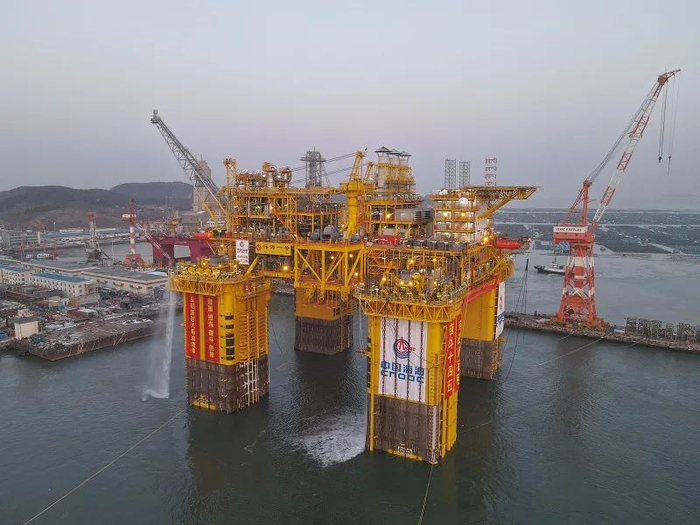 “深海一号”是同时具备油气处理、凝析油储存和油气外输功能的深水生产作业平台,由上部组块和船体两部分组成,按照“30年不回坞检修”的高质量设计标准建造,设计疲劳寿命达150年,可抵御百年一遇的超强台风。