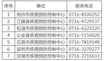 附:荆州市各疾控中心咨询热线