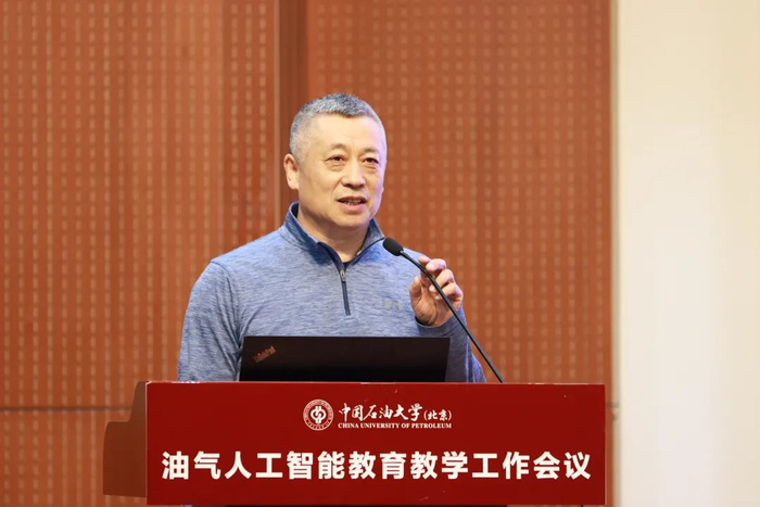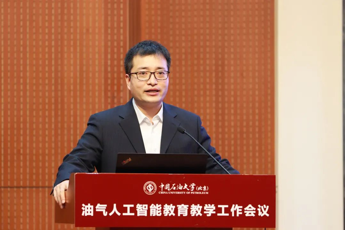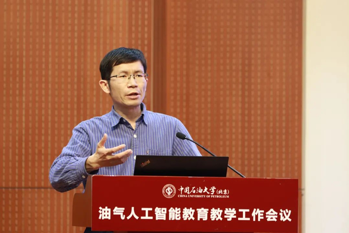 人工智能学院副院长宋先知汇报了学院“油气人工智能”复合型创新人才差异化培养体系建设过程和成效,从课程体系建设、教师团队建设、教学质量保障、师生实践交流、教学改革项目、招生选拔、论文开题等方面对油气人工智能教育教学工作进行了回顾和总结,表示学院将进一步完善“人工智能”专业核心课程体系建设,聚集人工智能授课教师师资,健全覆盖石油石化全产业链的“油气人工智能”实践平台和虚拟仿真实验室,更好地支撑“油气人工智能”复合型人才培养。