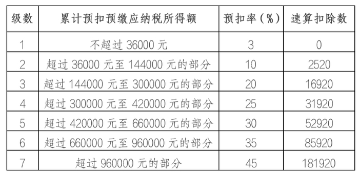 个人所得税预扣率表一