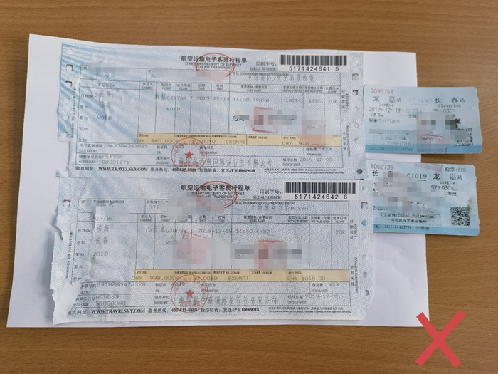 3.分类粘贴。票据较多时,请按用途将同一类别的票据粘贴在一起,以便统计、查阅(注意不要遮挡)。如机票、住宿费票、出租车票等。