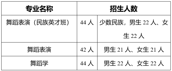 注:今年我校舞蹈编导专业不再单独考试招生,招生计划纳入舞蹈表演(含民族英才班)和舞蹈学专业招生,一至二年以后可从中选拔优秀编导人才组班进行专门培养。