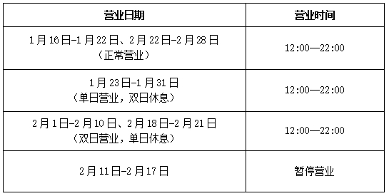 2月1日—2月20日 (营业时间待定)