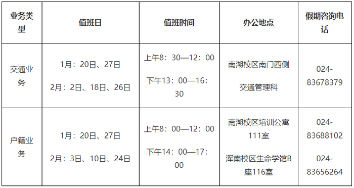浑南校区管理委员会值班室:83656065