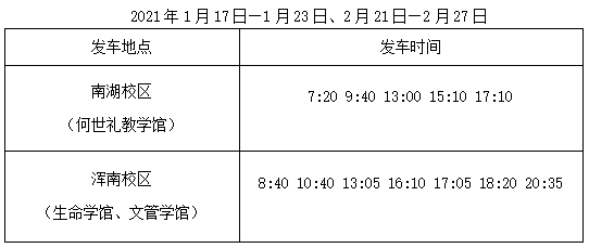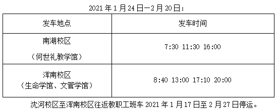 寒假期间,学校将视疫情防控形势及学生乘车需求情况,可能对车辆发车时间及班次进行调整,请随时留意通知。
