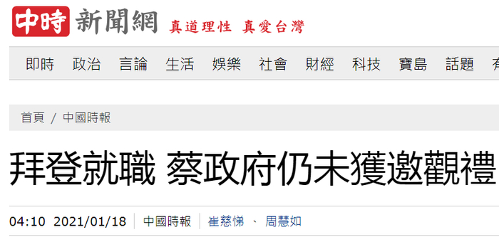 蔡英文着急:离拜登就职只剩三天 却还没搞到观礼票