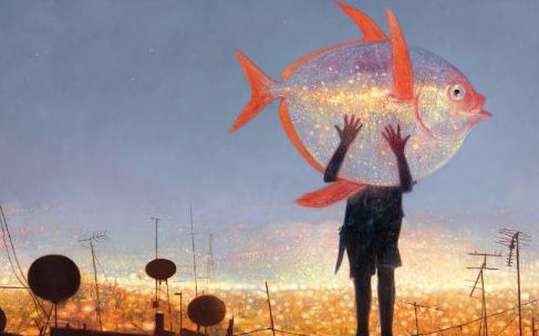 《内城故事》插画:月亮鱼,从天空被钓下。