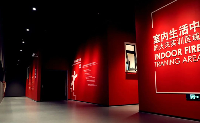 综合演练馆内利用高层、校园、超市等真实场景,通过不同类型的火灾逃生为引,提升体验者遇到突发紧急状况的应对能力。为了更好地还原火灾现场,还配备了加热门把手、烟雾机、报警互动平台等设备,使体验者有身临火场的切实紧迫感。
