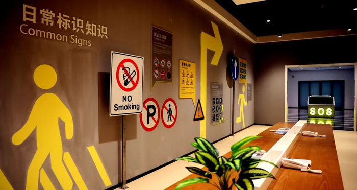 据上海消防总队介绍,上海市公共安全教育实训基地消防安全作为8类主题之一,通过情景互动促进学生公共安全教育知行合一。消防安全实训馆位于实训基地二楼。展陈面积约为880㎡,分A、B两个馆。