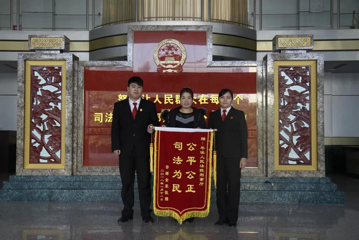 经过反复调解,安某终于从外地汇款到岑溪市法院的账户,保证了受害方及时得到赔偿。王某因而也获得受害方的谅解。最终,法院从轻处罚,判处王某缓刑。案件完满审结。事后,安某从山东赶到岑溪,向卢新燕赠送锦旗表达谢意。