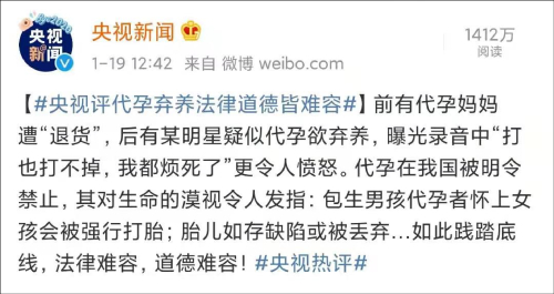 此外,@央视新闻 所批驳的“包生男孩代孕者怀上女孩会被强行打胎”行为,可能会因为对孕母造成严重伤害而构成“故意伤害罪”。
