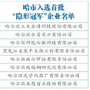 隐形冠军企业是指那些不为公众所熟知,却在某个细分行业或市场占据领先地位,拥有核心竞争力和明确战略,其产品、服务难以被超越和模仿的中小型企业。我省于2019年11月28日印发《黑龙江“隐形冠军”企业培育实施方案》,培育制造业“隐形冠军”企业将围绕构建“433”工业新体系,重点在绿色食品、高端装备、新材料、生物医药等新兴产业和传统优势产业领域开展工作。
