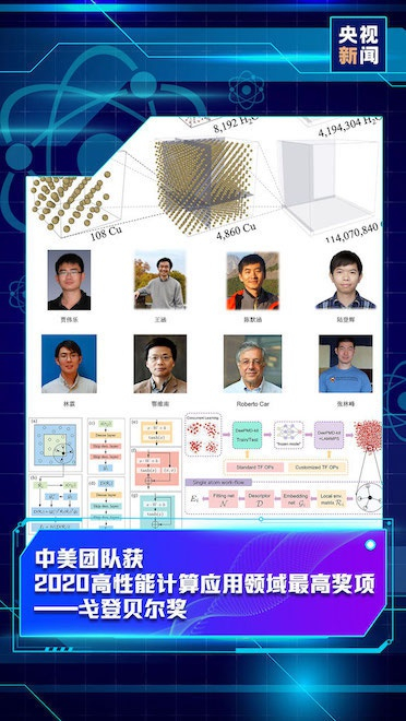 2020年11月19日下午,由中国科学院计算技术研究所贾伟乐副研究员、中国科学院院士鄂维南、北京大数据研究院张林峰研究员及其合作者共同完成的应用成果获得国际高性能计算应用领域最高奖——戈登贝尔奖。