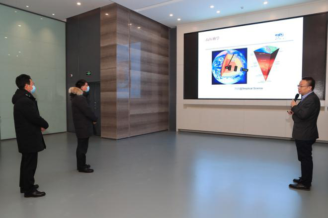 张希一行专门调研了“新一代大型超高压产生装置”的研究进展情况。这是由邹广田院士负责,国家自然科学基金委员会资助的重大科研仪器设备研制专项。经过五年多的不懈努力,项目组成员攻克了许多技术难题,目前,整体研究技术指标全部达到预期,已进入国家基金委现场验收阶段。在实验室现场,张希听取了项目技术参数和验收准备情况的汇报。他希望实验室努力建好科研创新平台,打造“大国重器”,为高压、材料、物理等相关学科建设和科学研究提供强有力技术支撑,为满足国家重大需要发挥重要作用。
