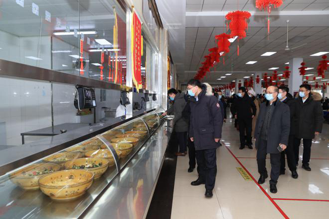 在中心校区湖畔餐厅,张希听取了假期食堂开放和饮食服务情况的汇报,要求相关工作人员进一步加强食品及原材料运输、储存、加工等各环节的消杀工作,全力保护在校师生的健康安全,精心做好假期及节日期间在校学生的饮食安排,保障留校同学过一个祥和、舒适、安全的春节。