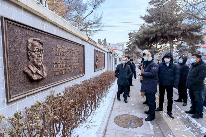 院落正位于长春历史文化街区,沿街建有历史文化名人浮雕墙。张希驻足在唐敖庆、朱光亚、蔡镏生等吉大先贤的浮雕前,同随行同志一起追忆先生们筚路蓝缕、艰苦创业,毕生育才树人、潜心教学科研的点滴故事。